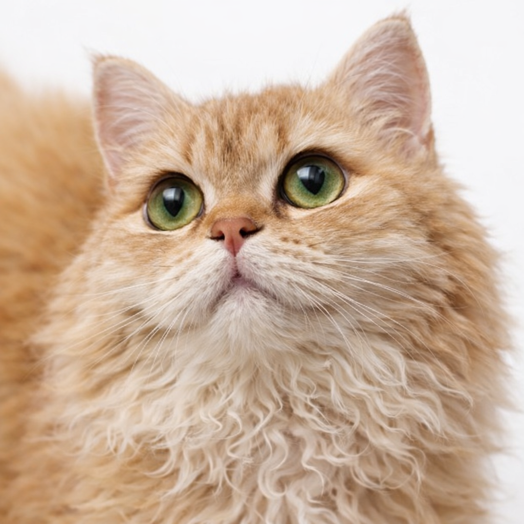 Un pelage bouclé et moelleux, associé à un tempérament calme et affectueux — souvent surnommés « chats-chiens »pour leur grande dévotion.